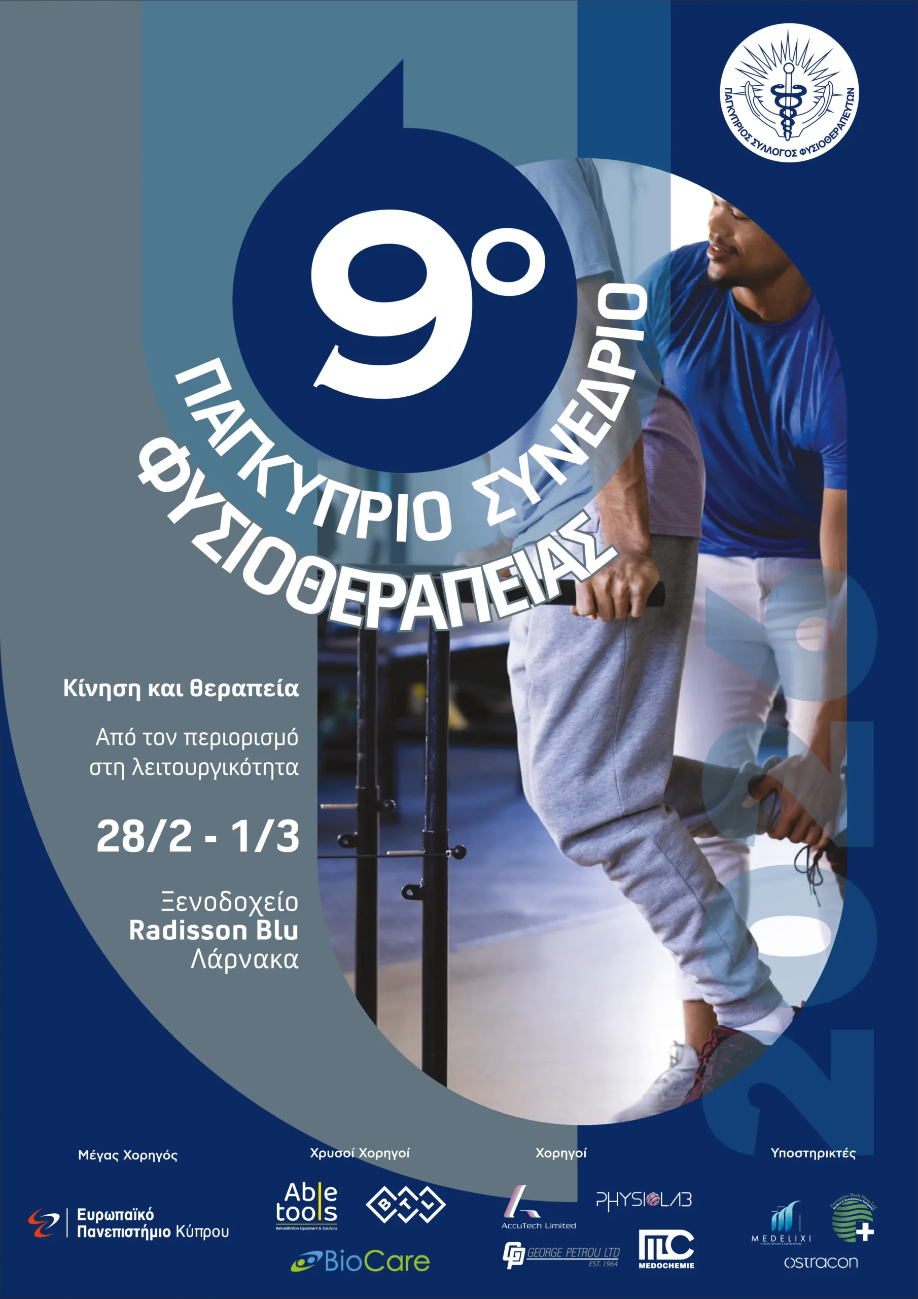 Εκ μέρους της Επιστημονικής Επιτροπής, έχω την τιμή και τη χαρά να σας προσκαλέσω στο 9ο Παγκύπριο Συνέδριο Φυσικοθεραπείας, με τίτλο: «Κίνηση και Θεραπεία – Από τον περιορισμό στην λειτουργικότητα», το οποίο θα διεξαχθεί στο ξενοδοχείο Radissons Blu 28/02-01/03/2026.